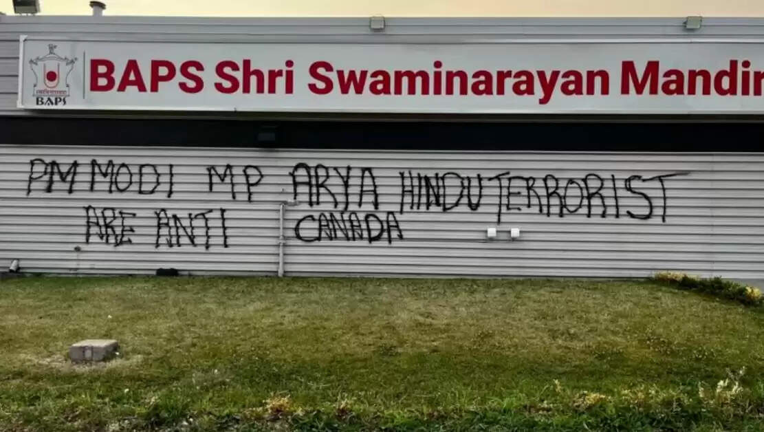 கனடாவின் எட்மன்டன் நகரில் சுவாமி நாராயண் என்ற இந்து கோவில் உள்ளது. அபகீர்த்தியை ஏற்படுத்தும் நோக்கில் அடையாளம் தெரியாத மர்ம நபர்கள் வர்ணம் பூசி சேதப்படுத்தியுள்ளனர். நேப்பான் தொகுதிக்கான எம்.பி. சந்திர ஆர்யாவின் கூற்றுப்படி, இந்து மற்றும் கனேடிய சமூகங்களுக்கு எதிரான வெறுப்பு சம்பவங்கள் நேரடியாக அதிகரித்து வருகின்றன. சுவாமி நாராயண் கோவில் மீது மீண்டும் தாக்குதல் நடத்தப்பட்டுள்ளது. கடந்த சில ஆண்டுகளாக, கிரேட்டர் டொராண்டோ பகுதி, பிரிட்டிஷ் கொலம்பியா மற்றும் கனடாவின் பிற பகுதிகளில் கோயில் சுவர்களில் வெறுக்கத்தக்க விஷயங்களை எழுதுவது உட்பட தாக்குதல்கள் நடந்ததாக X சமூக ஊடகங்களில் பதிவிட்டுள்ளார்.