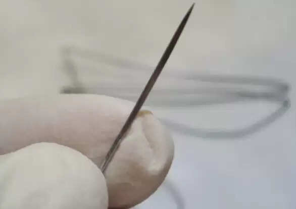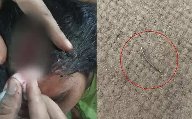 அறுவைசிகிச்சைக்குப் பிறகு, பெண் கடுமையான தலைவலியால் வீடு திரும்பினார். தனியார் மருத்துவமனையில் ஸ்கேன் செய்து பார்த்ததில் தலைக்குள் ஊசி இருப்பது தெரியவந்தது. இதையடுத்து, உடனடியாக அறுவை சிகிச்சை மூலம் ஊசி அகற்றப்பட்டது.