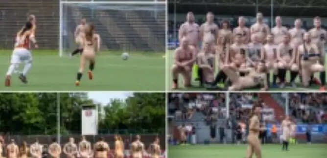 மைதானத்தில் அதிர்ச்சி.. உடம்பில் ஒட்டுத் துணி கூட இல்லாமல் கால்பந்து விளையாடிய ஆண்கள் அணி!
