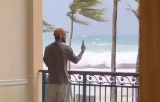 'பெரில்' புயல் காரணமாக வீரர்கள் நாடு திரும்ப முடியாமல், அங்குள்ள நட்சத்திர ஓட்டலில் தங்க வைக்கப்பட்டனர். ஹோட்டல் அறையில் தங்கியிருந்த விராட் கோலி, பால்கனியில் இருந்து தனது காதல் மனைவி அனுஷ்காவுக்கு வீடியோ கால் செய்தார். பின்னர் அவர் புயலின் கொந்தளிப்பு மற்றும் கடுமையான சூறாவளி காற்றை தனது மனைவி அனுஷ்காவுக்கு வீடியோ அழைப்பு மூலம் நேரடியாக ஒளிபரப்பினார்.