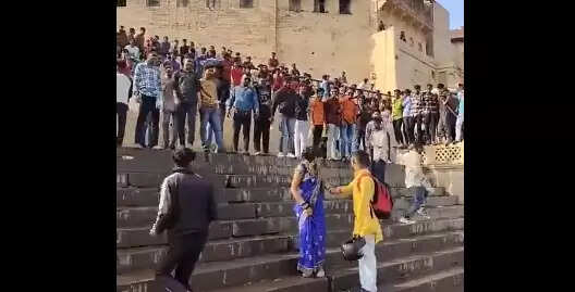 ஹோலி பண்டிகை கொண்டாட்டத்தின் போது, உத்தரபிரதேச மாநிலம் வாரணாசியில் இந்த சம்பவம் நடந்ததாக சமூக வலைதளங்களில் வீடியோ ஒன்று வைரலாகி வருகிறது. வீடியோவில், ஒரு ஜோடி நடந்து செல்லும் போது ஒரு கும்பல் தம்பதியினர் மீது தண்ணீரை வீசியது. இதனால் ஆத்திரமடைந்த இருவரும் தண்ணீர் ஊற்ற வேண்டாம் என எச்சரித்தனர்.