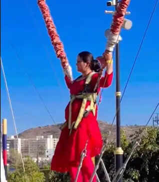 அதிர்ச்சி வீடியோ... கயிற்றில் வானத்தில் சுற்றி சுற்றி பறக்கும் இளம்பெண்!