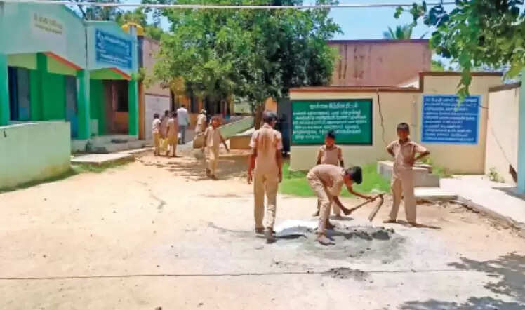 வெயிலில் சிமெண்ட் கலவை சுமந்த மாணவர்கள்.. அரசுப் பள்ளிகளில் அவலம்!!