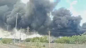 கும்மிடிப்பூண்டி சிப்காட் தொழிற்பேட்டையில் பழைய டயர்கள் சேமிப்பு கிடங்கில் திடீர் தீ விபத்து ஏற்பட்டது. இது குறித்து தகவல் அறிந்ததும் தீயணைப்பு வீரர்கள் 2 வாகனங்களில் சென்று தீயை அணைக்கும் பணியில் ஈடுபட்டு வருகின்றனர். பழைய டயர்கள் கொழுந்து விட்டு எரிந்ததால் அப்பகுதியை கரும்புகை மண்டலம் சூழ்ந்தது. அதிகாலை நேரத்தில் ஊழியர்கள் பணியில் இல்லை என்பதால் யாருக்கும் பாதிப்பு ஏற்படவில்லை எனத் தகவல்கள் வெளியாகியுள்ளது.