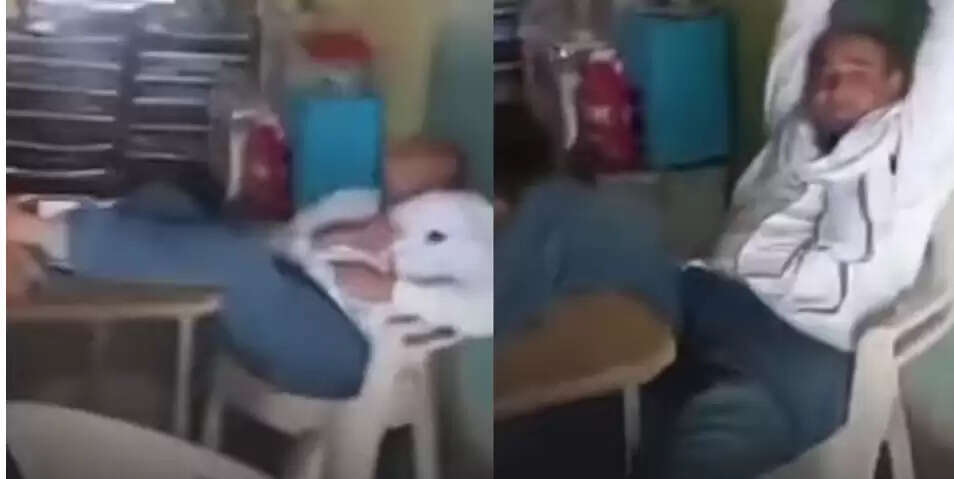 அதிர்ச்சி வீடியோ... அரசு பள்ளியில் அவலம்... மேஜை மீது கால் வைத்து சுகமாக குறட்டை விட்டு தூங்கும் ஆசிரியர்!
