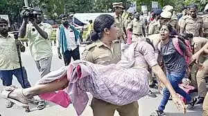 சமவேலைக்கு சம ஊதியம் போராட்டத்தில் ஈடுபட்ட ஆசிரியர்கள், தூய்மைப் பணியாளர்கள் கைது