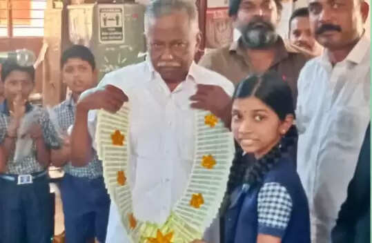 மேலும், 40 ஆண்டுகளுக்கும் மேலாக பொதுப்பணியில் பணியாற்றி வரும் பள்ளி தலைமை ஆசிரியரின் தன்னலமற்ற சேவைக்கு நன்றி தெரிவித்து பண மாலை அணிவித்தேன்,'' என்றார். மாணவியின் இந்த செயல் பள்ளி ஆசிரியர்கள் மற்றும் மாணவர்கள் மத்தியில் நெகிழ்ச்சியை ஏற்படுத்தியுள்ளது.