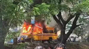 கேரளா மாநிலம் திருவனந்தபுரம் பகுதியில் இன்று அதிகாலை ஒரு தனியார் பள்ளி வளாகத்தில் எரிநிலையாக திடீர் தீ விபத்து ஏற்பட்டது. பள்ளி பகுதியில் நிறுத்தப்பட்டிருந்த 4 பேருந்துகளில் 3 பேருந்துகள் முற்றிலும் எரிந்து நாசமானது. ஒரு பேருந்து அலகு அளவு சேதமடைந்தது. இதில் யாருக்கும் உயிர் சேதம் இல்லாதது என்பது அதிர்ஷ்டமாகும்.