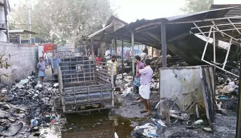 பழைய துணிகளில் தீப்பற்றி கொழுந்து விட்டு எரிந்தது. குடோனுக்குள் நிறுத்தி வைத்திருந்த 2 சரக்கு ஆட்டோக்கள், ஒரு பைக் முற்றிலும் எரிந்து நாசமானது. தீயணைப்பு வீரர்கள் 3 மணி நேரத்துக்கு மேல் போராடி தீயை முற்றிலும் அணைத்தனர். அங்குவந்த வீரபாகு குடோன் தீப்பிடித்து எரிவதை பார்த்து அதிர்ச்சி அடைந்தார்.