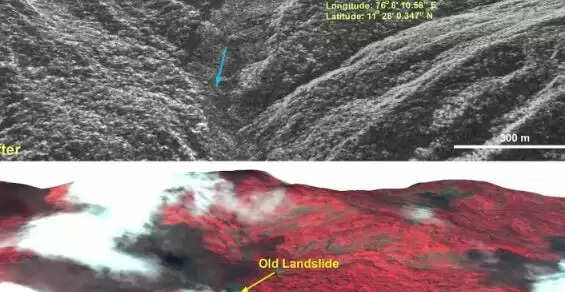 இந்திய விண்வெளி ஆராய்ச்சி மையத்தின் (இஸ்ரோ) தேசிய தொலை உணர்வு மையம் (NRSC) கேரளாவில் ஏற்பட்ட பேரழிவின் உயர் தெளிவுத்திறன் கொண்ட செயற்கைக்கோள் படங்களை வெளியிட்டுள்ளது. கேரளாவின் வயநாடு மாவட்டத்தில் நிலச்சரிவுகளால் ஏற்பட்ட விரிவான சேதத்தை இது வெளிப்படுத்துகிறது. நிலச்சரிவின் முன்னும் பின்னும் புகைப்படங்கள் இருவைப்புழா ஆற்றின் குறுக்கே சுமார் 86,000 சதுர மீட்டர் நிலம் சறுக்கி சுமார் 8 கிலோமீட்டர் தூரம் பாய்கிறது.