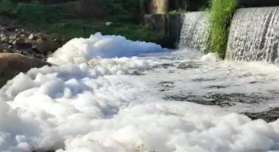கழிவுநீர் கலந்துவிடப்படுவதால் நுரை பொங்க செல்லும் ஆற்று நீர்....!