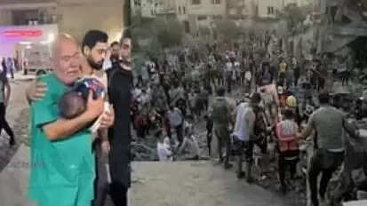 ஹமாஸ் படையினர் கட்டுப்பாட்டில் இருக்கும் காஸா பகுதி மீது இஸ்ரேல் தொடர்ந்து வான்வழித் தாக்குதலை முன்னெடுத்து வருகிறது.மருத்துவமனை கட்டடங்கள், குடியிருப்பு பகுதிகள் என இஸ்ரேல் போர் விமானங்கள் இடைவிடாமல் குண்டுகளை வீசி வருகின்றன. இந்த தாக்குதலால் காஸா நகரமே சிதைந்து வரும் சூழலில், தரைமட்டமாகி கிடக்கும் கட்டடங்களின் இடிபாடுகளில் சிக்கியவர்களை மீட்கும் பணிகள் இரவு, பகல் பாராமல் நடந்து வருகிறது.இந்நிலையில் மருத்துவர் ஒருவர் பச்சிளம் குழந்தையான தனது பேரனின் சடலத்தை கைகளில் ஏந்தி கண்ணீர் சிந்தும் காட்சிகள் காண்போரை கலங்க வைத்துள்ளது. இது குறித்தான வீடியோ வெளியான நிலையில் பலரும் தங்களது கருத்துக்களை பகிர்ந்து வருகின்றனர்.