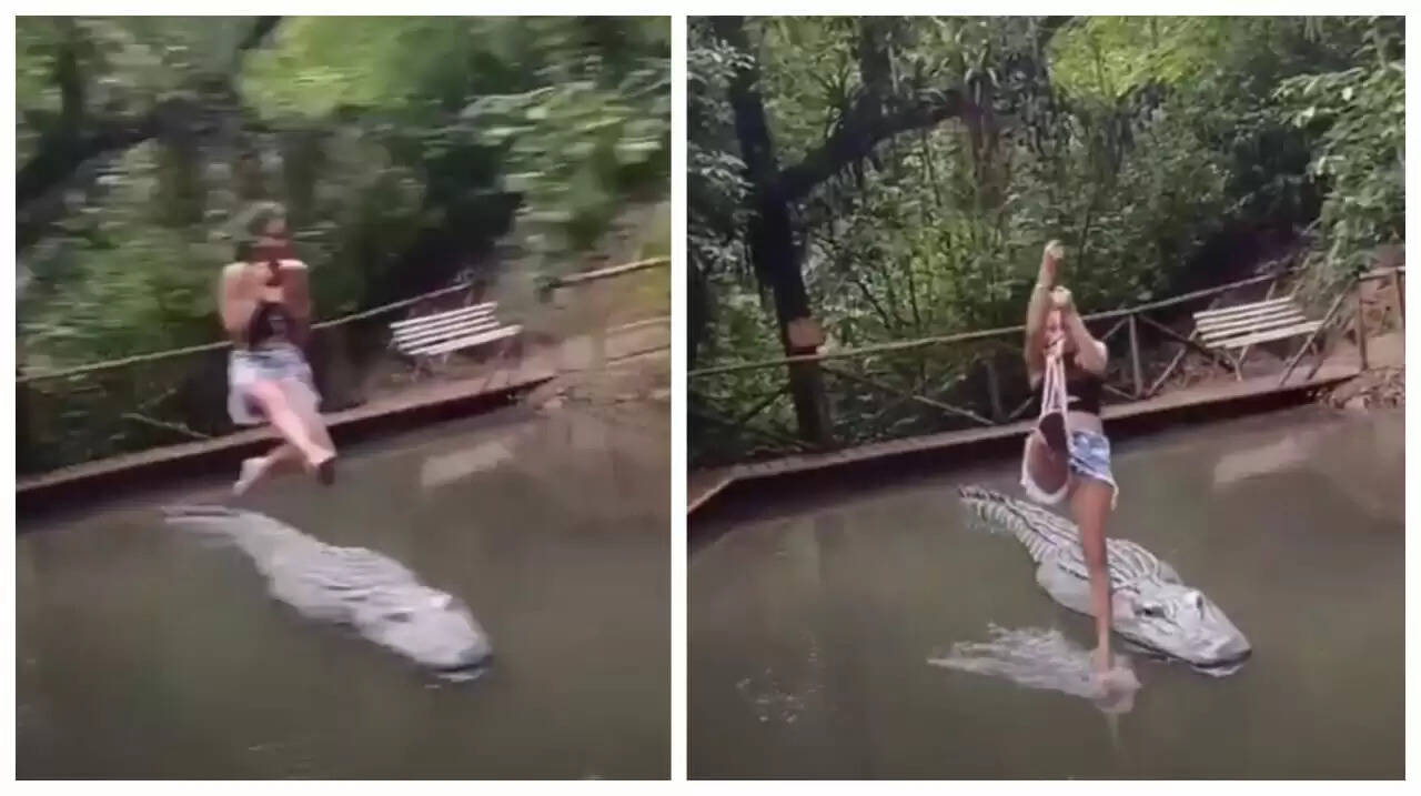 சமூக வலைதளங்களில் தினமும் பல்வேறு விதமான வீடியோக்கள் வெளியாகி வைரலாகி வருகின்றன. அந்த வகையில் ஒரு பெண்மணி முதலையின் வாய்க்குள் கால் விடுவது போன்று தற்போது ஒரு வீடியோ வெளியாகி பெரும் பரபரப்பை ஏற்படுத்தியுள்ளது. அதாவது ஒரு நீர்நிலையில் முதலை ஒன்று இருக்கும் நிலையில் ஒரு இளம் பெண் கயிறு கட்டி முதலையின் மேல் அங்கும் இங்குமாக பறந்து பறந்து செல்கிறார்.