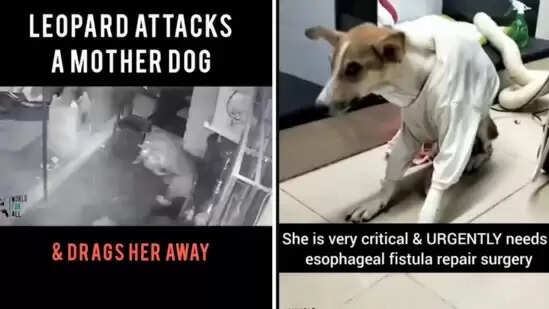 அதன்பின் சிறுத்தையுடன் போராடிய தாய் நாய் உயிருடன் வந்து அங்கு பசியில் இருந்த தனது குட்டிகளுக்கு பாலூட்டி உள்ளது.