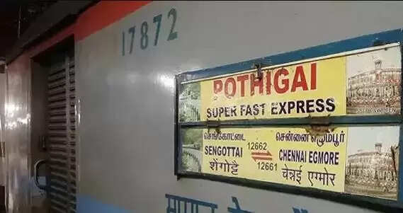 செங்கோட்டையில் இருந்து சென்னை செல்லும் பொதிகை விரைவு ரயில் கடந்த செப்டம்பர் 25ம் தேதி செங்கோட்டையில் இருந்து புறப்பட்ட நிலையில், சென்னைக்கு சென்றுக் கொண்டிருந்த போது , கடையநல்லூர் - பாம்பகோவில் சந்தை ரயில் நிலையங்களுக்கு இடையே தண்டவாளத்தில் இருந்த கல் மீது மோதியது. இதில் ரயிலின் இன்ஜின் முன் பக்க தகடு சேதமடைந்தது.