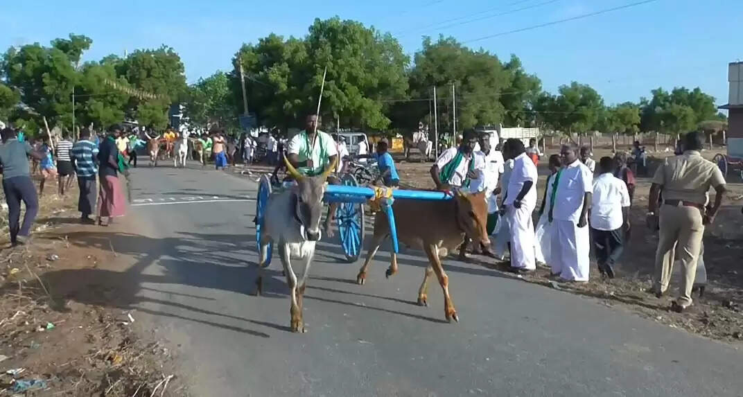 தூத்துக்குடி மாவட்டம் விளாத்திகுளத்தில் மாபெரும் மாட்டு வண்டி எல்கை பந்தயம் விளாத்திகுளம் மதுரை சாலையில் சின்னமாடு பூஞ்சிட்டு என இரு பிரிவுகளாக நடைபெற்றது.