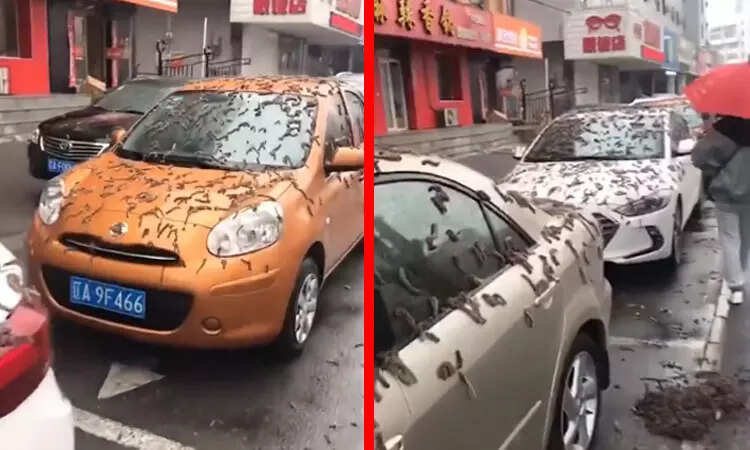 இது குறித்த வீடியோ ஒன்று சமூக வலைதளங்களில் வைரலாகி வருகிறது. அந்த வீடியோவில் வரிசையாக நிற்கும் கார்களின் மீது பெரிய, தடிமனான அளவுள்ள, பழுப்பு நிறத்தில் வளைந்தும், நெளிந்தும் போர்வை போன்று புழுக்கள் குவிந்துள்ளன. வானில் இருந்து புழுக்கள் ஏதும் மேலே பட்டுவிடக் கூடாது என்பதற்காக சிலர் குடை பிடித்தபடியே செல்வதையும் காணமுடிகிறது. இதற்கான காரணம் இதுவரை என்னவென்றே தெரியவில்லை. பலத்த காற்றில் அடித்து வரப்பட்டு போடப்பட்டு இருக்கும் என மதர் நேச்சர் என்ற அறிவியல் பத்திரிகை செய்தி வெளியிட்டுள்ளது.