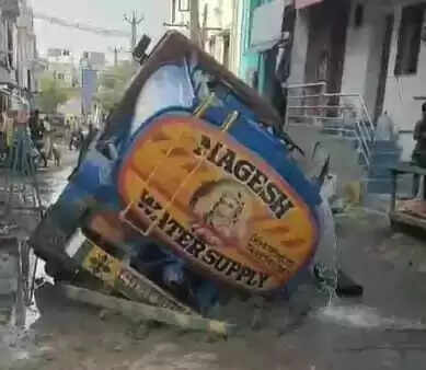 மழை நீர் வடிகால்வாயில் தண்ணீர் டேங்கர் லாரி சிக்கியது!