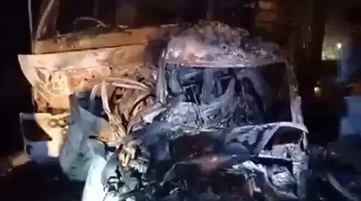 உத்தரபிரதேச மாநிலம் ஜான்சி மாவட்டத்தில் ஆகாஷ் அஹிர்வாராவுக்கு (25) திருமண ஏற்பாடுகள் செய்யப்பட்டன. இதற்காக மணமகன் வீட்டில் இருந்து 6 பேர் காரில் மணமகள் வீட்டுக்கு சென்று கொண்டிருந்தனர்.கான்பூர் நெடுஞ்சாலையில் படகோன் பகுதியில் கார் சென்று கொண்டிருந்தபோது, பின்னால் வந்த லாரி திடீரென அதிவேகமாக கார் மீது மோதியது. தாக்குதலை அடுத்து கார் தீப்பிடித்து எரிந்தது.