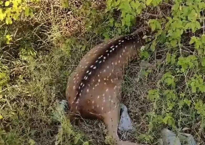 சாலை கடக்க முயன்ற போது விபரீதம்.. வாகனம் மோதி புள்ளி மான் உயிரிழப்பு!
