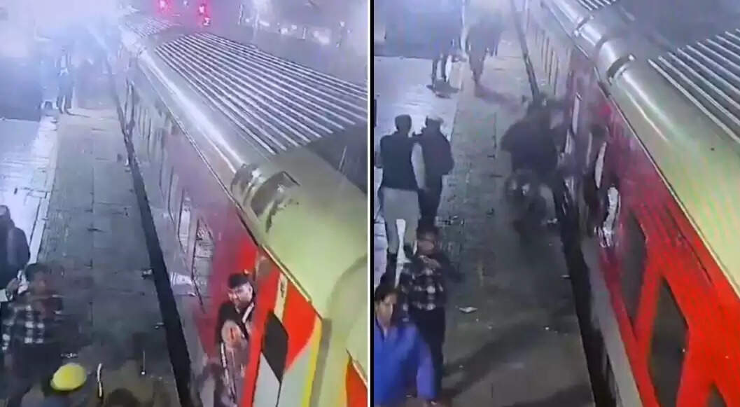 இந்த சம்பவத்தின் 11 வினாடி வீடியோவில், அந்த பெண் ரயிலில் இருந்து குதித்தவுடன் இரண்டு போலீசார் அவரை காப்பாற்றுவதைக் காட்டுகிறது. அவர் விழுந்த சில நொடிகளில் GRP பணியாளர்கள் அவரைப் பிடித்தனர்.