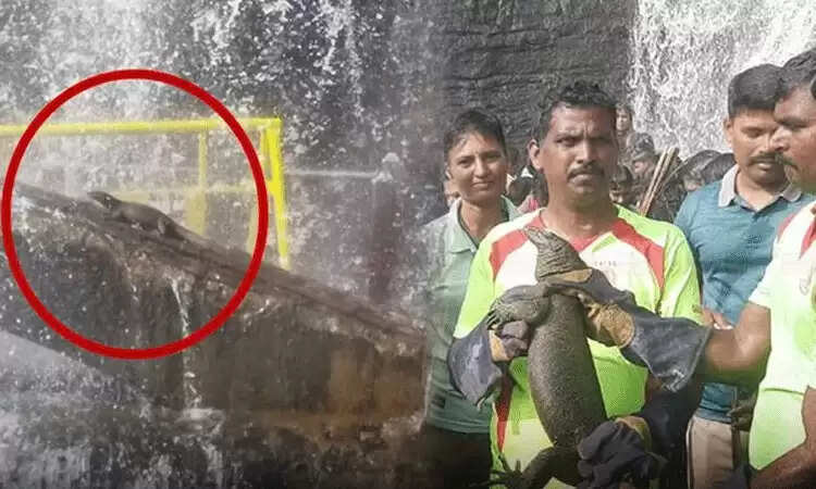 அலறியடித்து ஓடிய பெண்கள்... குற்றாலத்தில் அருவியில் அடித்து வந்த உடும்பு!