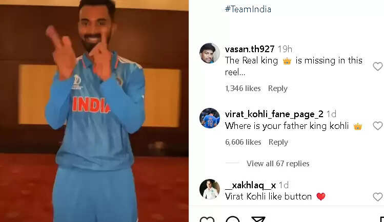 இந்திய கிரிக்கெட் அணியினர் வெளியிட்டுள்ள ரீல்ஸ் பதிவில், விராட் கோலி குறித்த கேள்வியே கமெண்ட்டில் நிரம்பி வழிகிறது. கோலி இல்லாமல் இந்த ரீல்ஸ் முழுமை பெறவில்லை ,  எங்கே எங்களது ராஜா எனவும் கிரிக்கெட் ரசிகர்கள் கேள்வி எழுப்பியுள்ளனர்.