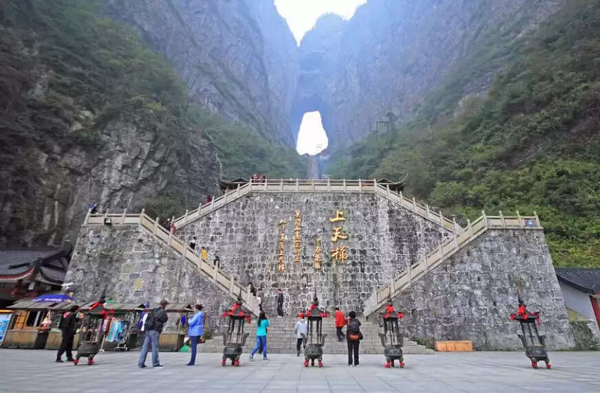 எனவே, மக்கள் சீனாவில் உள்ள ஒரு இடத்தை சொர்க்க வாசல் என்று அழைக்கிறார்கள். இயற்கை வளைவு என்பது வடமேற்கு சீனாவின் ஹுனான் மாகாணத்தில் உள்ள ஜாங்ஜியாஜியில் உள்ள தியான்மென் மலை தேசிய பூங்காவில் உள்ள தியான்மென் மலையில் உள்ள இயற்கை வளைவு ஆகும். இந்த குகை வடிவ சொர்க்க வாசல் கடல் மட்டத்திலிருந்து 5,000 அடி உயரத்தில் காணப்படுகிறது. இந்த பகுதிக்கு யாரும் எளிதில் செல்ல முடியாது. 2005 க்குப் பிறகு, இந்த குகைக்கு செல்ல ஒரு கேபிள் கார் கட்டப்பட்டது. சுமார் 4,000 அடி வரை மட்டுமே செல்ல முடியும்.