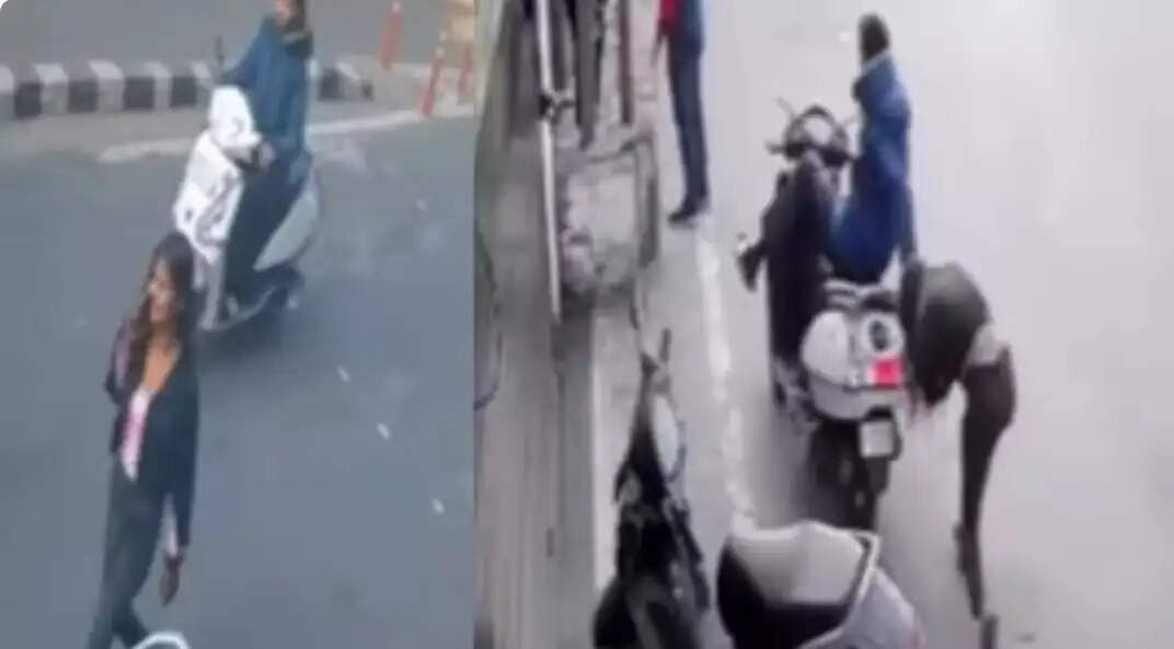 இந்தியாவில் பஞ்சாப் மாநிலத்தில் உள்ள லூதியானாவில் இளம்பெண் செல்போனில் பேசியபடி சாலையில் நடந்து சென்று கொண்டிருந்தார். அப்போது மோட்டார் சைக்கிளில் வேகமாக வந்த இளைஞர் அந்த பெண்ணிடம் இருந்து செல்போனை பறிக்க முயற்சி செய்துள்ளார். அந்த பெண் விடாமல் செல்போனை இறுக்கி பிடித்துக் கொண்டார்.